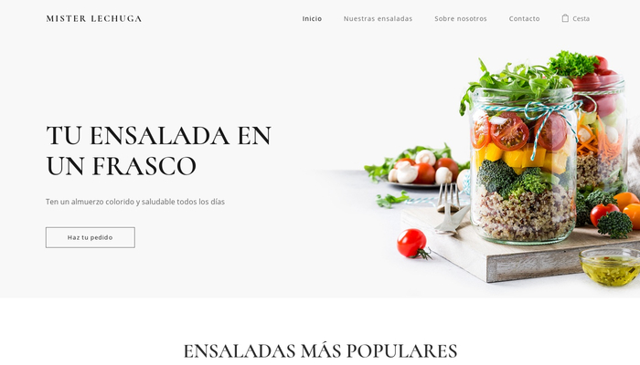 ¡Lanza tu negocio de comida a domicilio con esta atractiva plantilla! Vende deliciosas ensaladas y comida saludable con facilidad. Sólo tienes que añadir algunas imágenes, contar qué hace que tus productos sean tan especiales y hordas de clientes hambrientos estarán haciendo pedidos antes de que termines de decir lechuga.